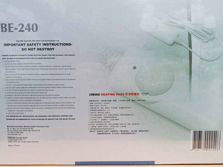 تشک برقی بسمد مدل Besmed BE-240 مناسب تسکین و آرام کردن درد ماهیچههای نواحی مختلف بدن میباشد. این پد دارای کاور قابل جدا شدن و قابلشستوشو است و از برق شهری استفاده میکند. شما میتوانید از طریق بند متصل به پد، آن را روی قسمت موردنظر بدن نگهدارید. پد حرارتی بسمد را همیشه روی قسمت بالایی بدن قرار دهید؛ روی آن نشینید و نخوابید.