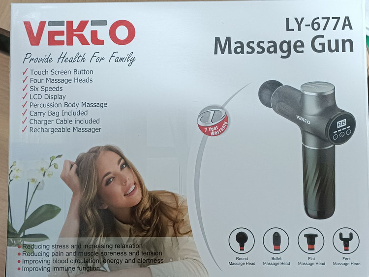 گان وکتو LY-677A یکی از بهترین و مدرن ترین ماساژور های برقی بدن است که جهت رفع گرفتگی و اسپاسم عضلات مورد استفاده قرار می گیرد. ماساژور تفنگی که با نام ماساژ گان نیز نامیده می شود که با اعمال ضربه و فشار، با سرعت و شدت نسبتا بالا به بافت و عمق عضلات ضربه وارد می کند. از ماساژور تفنگی در مراکز درمانی، ورزشی و فیزیوتراپی استفاده می شود.