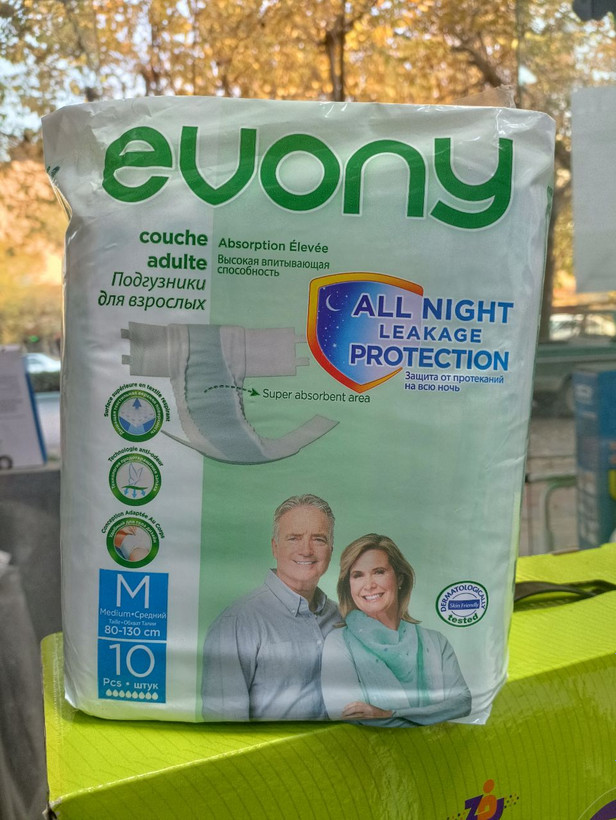 3-سایز مدیوم پوشک جذبی اوونی EVONY بسته بندی های ده عددی است .
