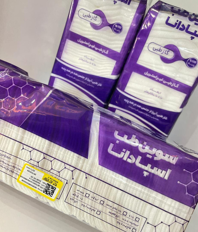 - گاز غیر استریل 16 و 8 لایه سوین طب اسپادانا بدون خط میباشد