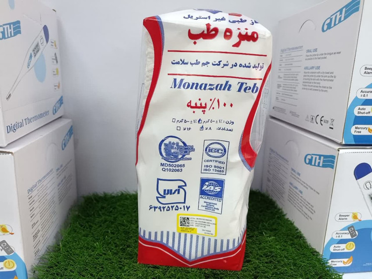 - گاز غیر استریل 16 و 8 لایه منزه بدون خط میباشد