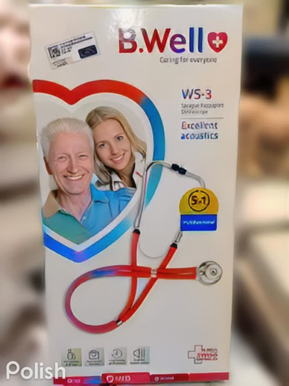 گوشی پزشکی حرفه ای بی ول مدل WS-3 ، یک استتسکوپ دو طرفه با روکشی از جنس کروم با نوک های سفید پلاستیکی در اندازه متوسط ( یک جفت ) میباشد .