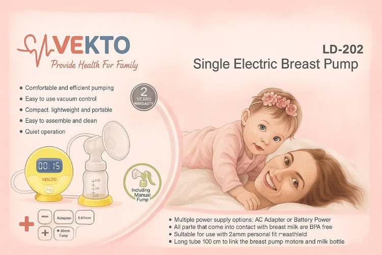 VEKTO LD-202 Electric & Manual Breast Pump | Compact, Quiet & Portable with Warranty