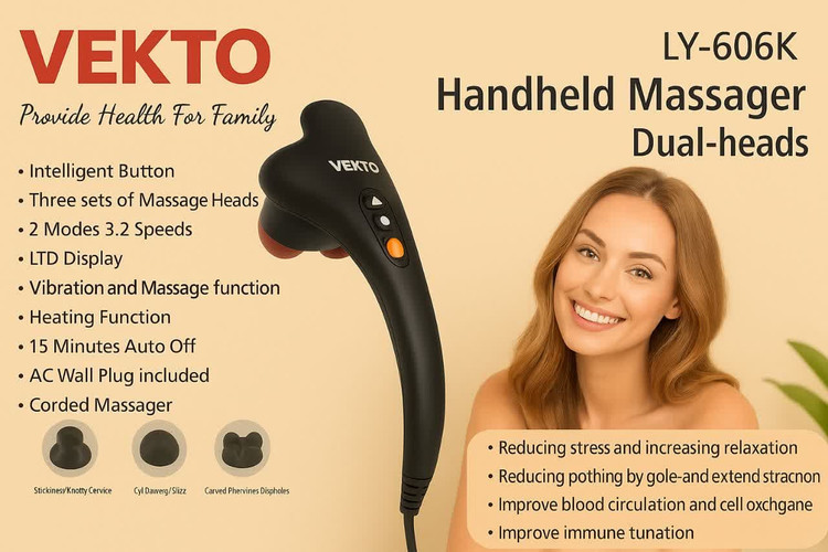 VEKTO LY-606K Dual-Head Handheld Electric Massager – Relaxation at Your Fingertips